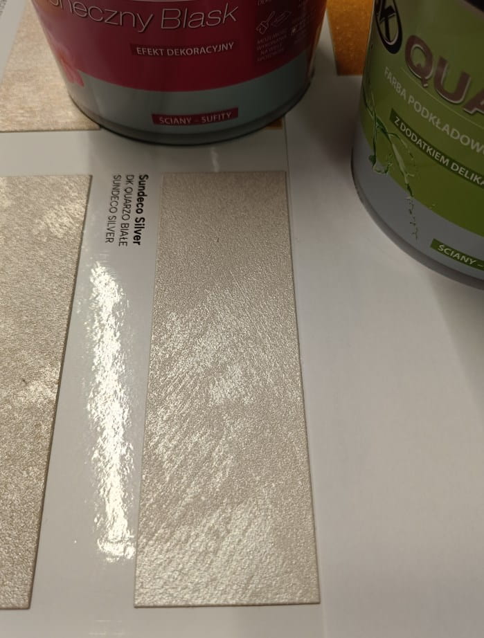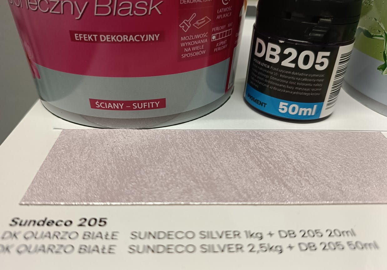 Decoverni Sundeco to srebrna farba, która wyróżnia się pięknym, perłowo-metalicznym aspektem. Jej specjalna formuła, wzbogacona o opalizujące drobinki, pozwala na uzyskanie dynamicznych refleksów świetlnych, które zmieniają swój wygląd w zależności od oświetlenia. Dzięki temu wnętrza zyskują unikalny, ekskluzywny charakter, doskonale komponując się zarówno z nowoczesnymi, jak i klasycznymi aranżacjami.