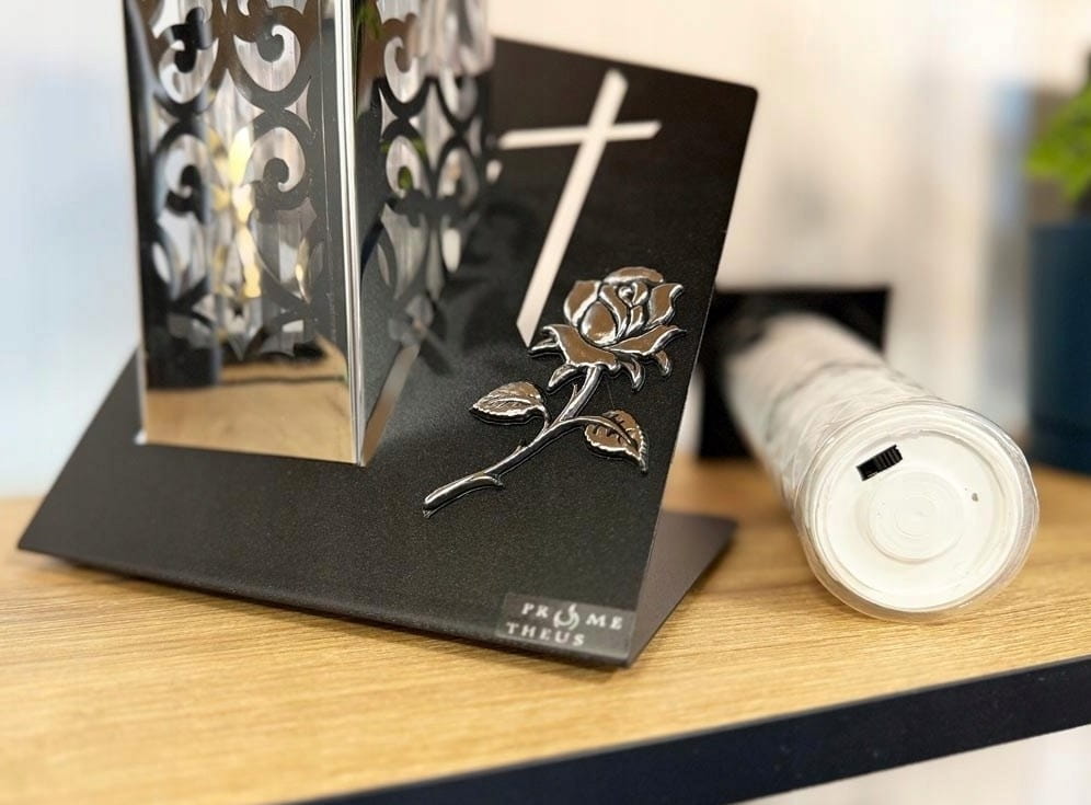 Dzięki eleganckiemu designowi, znicz solarny LPSK2 pięknie komponuje się z otoczeniem, dodając nagrobkom nowoczesnego i zadbanego wyglądu.