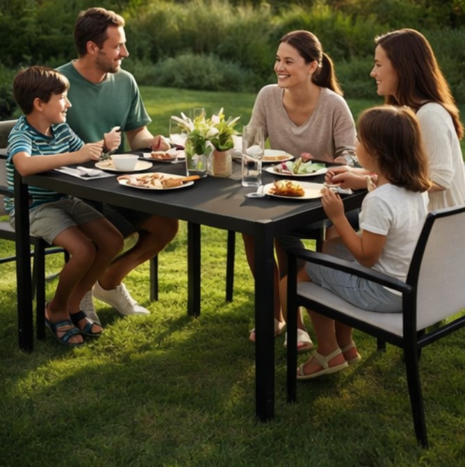 W ogrodzie, na tarasie i na większym balkonie to właśnie stół najczęściej staje się centrum codziennych chwil. To przy nim zaczyna się poranna kawa, rodzinny obiad na świeżym powietrzu, letnie spotkanie ze znajomymi i spokojny wieczór po całym dniu. Stół ogrodowy PALERMO 150x90 cm został zaprojektowany właśnie z myślą o takich momentach — ma być wygodny, stabilny, trwały i gotowy na regularne użytkowanie przez cały sezon.