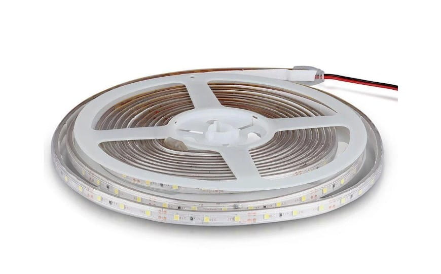 Taśma LED V-TAC SMD3528 emituje jasne, chłodne światło o temperaturze barwowej 6500K, idealne do oświetlenia przestrzeni roboczych, kuchni, łazienek oraz miejsc, gdzie potrzebne jest wyraźne i mocne światło.