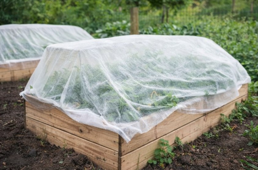 Materiał tworzy lekką osłonę, która ogranicza wpływ silnego wiatru oraz utrudnia dostęp szkodnikom do roślin.