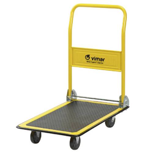 Składana platforma w kolorze żółto-czarnym zapewnia nie tylko dużą przestrzeń transportową, ale także łatwość przechowywania. Ergonomiczny design oraz solidna rama zwiększają komfort i bezpieczeństwo pracy.
