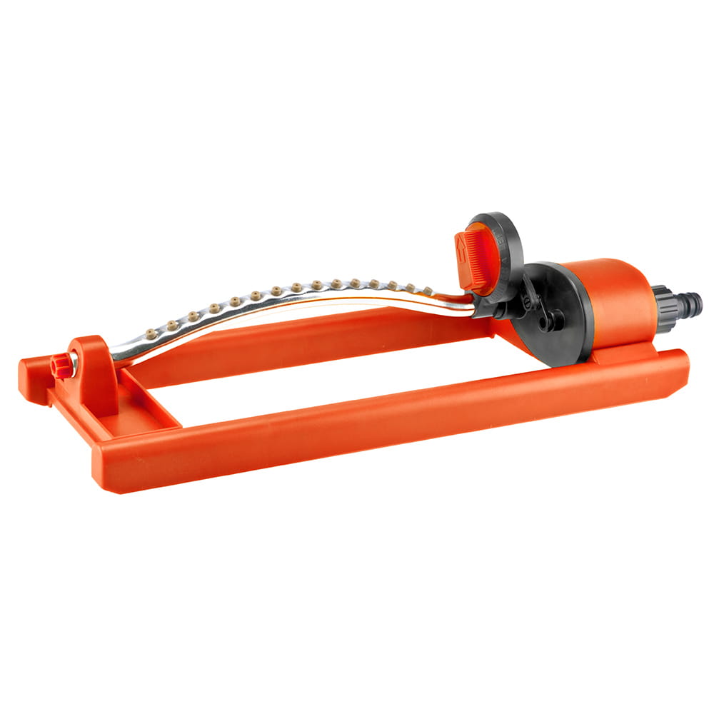 Zraszacz oscylacyjny z rurką aluminiową Verdenia marki Galicja to wysokiej klasy zraszacz wahadłowy wykonany z aluminium oraz tworzywa sztucznego ABS. Za sprawą specjalnych dyszy jest to sprzęt łatwy do utrzymania w czystości, który oferuje płynną regulację działania. Posiada aż 17 otworów.
