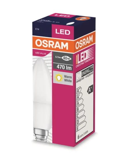 Żarówka OSRAM LED E14 B37 4,9W = 40W 470lm 2700K Ciepła 200° Value