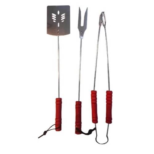 W skład zestawu wchodzą: szczypce, łopatka oraz widelec, wykonane z trwałej stali chromowanej, a ergonomiczne uchwyty zapewniają komfort i bezpieczeństwo użytkowania.