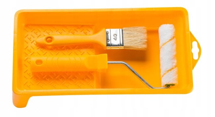 Zestaw Gepard zawiera wałek malarski 10 cm, kuwetę oraz pędzel. Komplet do prostych prac malarskich i poprawek.