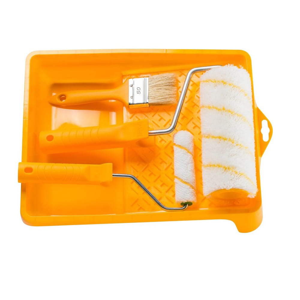 Przeznaczony do pracy z farbami wodorozcieńczalnymi, takimi jak farby emulsyjne, lateksowe, silikonowe i silikatowe, ten zestaw gwarantuje wysoką jakość malowania dzięki solidnym narzędziom.