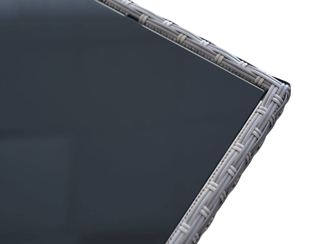 Blat z hartowanego szkła 5 mm dodaje kompletowi elegancji i sprawia, że zestaw wygląda bardziej nowocześnie. To detal, który bardzo mocno wpływa na odbiór całości i sprawia, że taras lub ogród zaczynają przypominać prawdziwy salon na świeżym powietrzu.