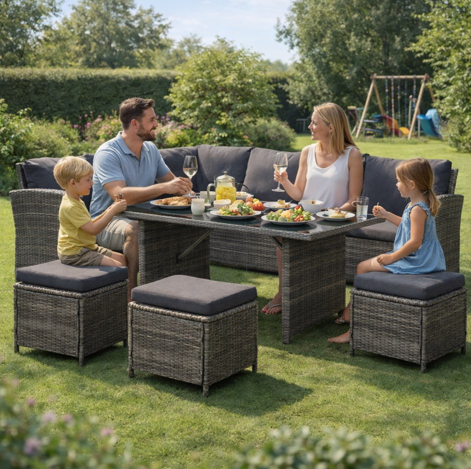 To świetna propozycja dla osób, które chcą mieć od razu gotową, wygodną i estetyczną strefę wypoczynku. Dla tych, którzy lubią spędzać czas na tarasie lub w ogrodzie, ale nie chcą tracić czasu na osobne kompletowanie mebli. Dla rodzin i wszystkich, którzy lubią przyjmować gości i chcą mieć więcej miejsc do siedzenia bez zagracania przestrzeni.