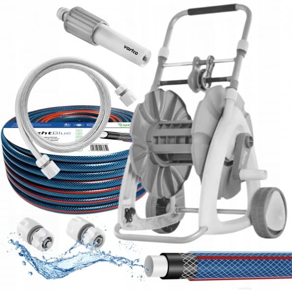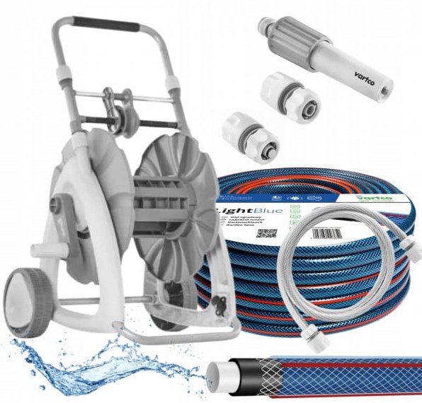 - Typ: wąż ogrodowy z wózkiem i akcesoriami