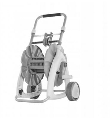 - Wygodna obsługa wózka: prowadnica ułatwiająca równomierne zwijanie węża, solidne koła i regulowany uchwyt pomagają w codziennym użytkowaniu.