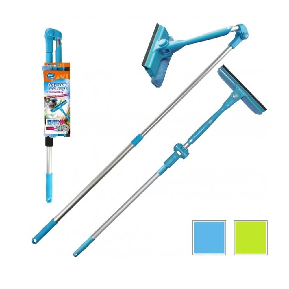 Unikatowy, dwustronny zmywak z drążkiem teleskopowym wyposażony w wałek z miękkiej mikrofibry, który delikatnie czyści powierzchnię bez pozostawiania zarysowań oraz gumową listwę do usuwania resztek wody. Atutem zmywaka jest możliwość regulacji kąta nachylenia części myjącej oraz kąta nachylenia kija teleskopowego dzięki czemu dociera on do najbardziej niedostępnych miejsc.